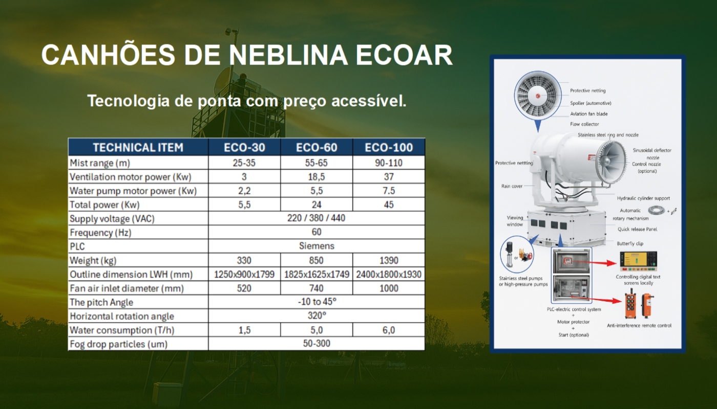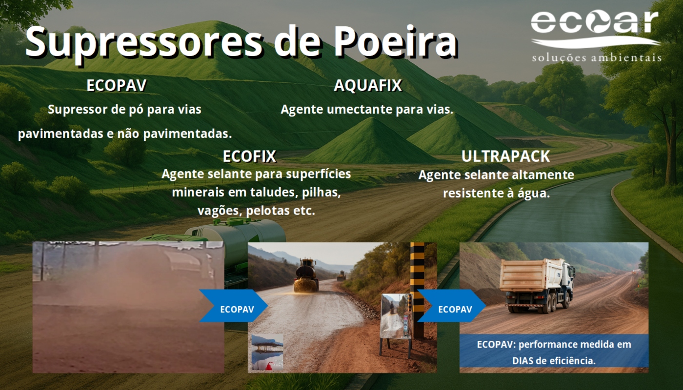 - Proporciona, além do controle da emissão de particulados, a forte redução do consumo de água e também de custos relacionados à operação de caminhões pipa, manutenção de acessos e desgaste de pneus